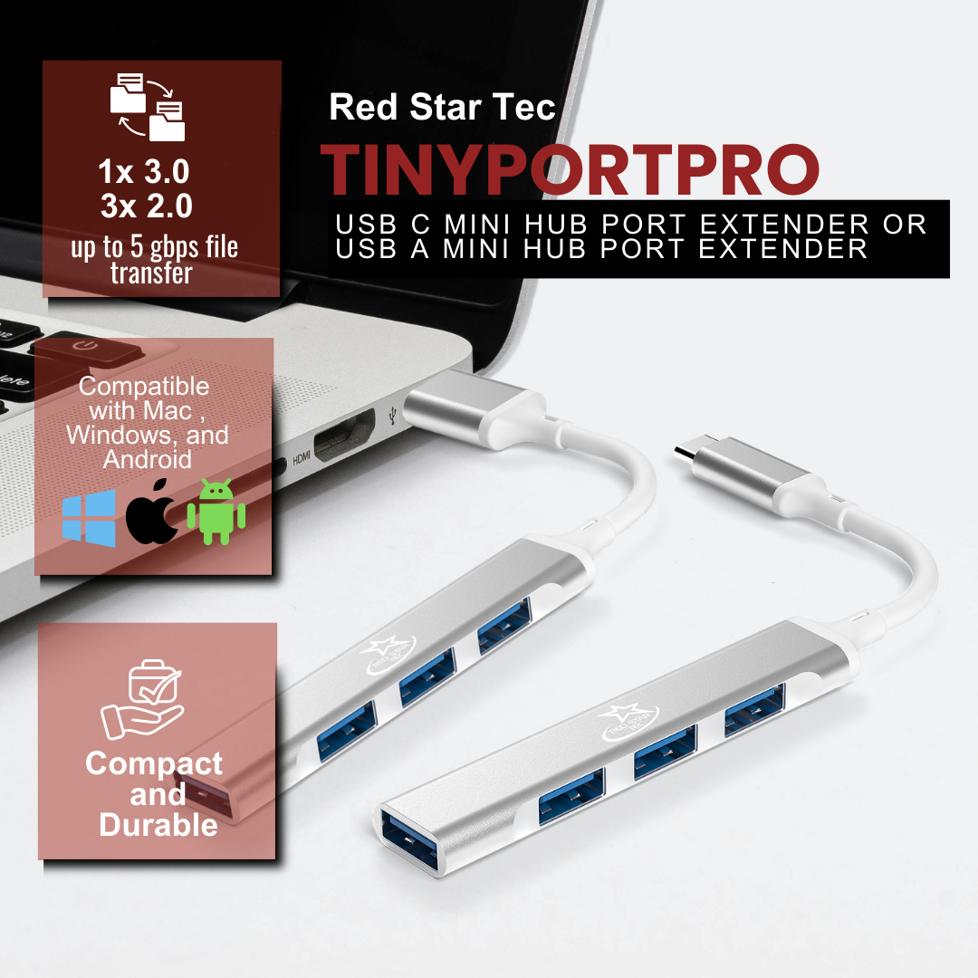 Buy 2 for $7 – 4-Port Mini Hub with USB-A & USB-C 3.0/2.0 Ports, Multiport Adapter for Laptop, Desktop, MacBook, Chromebook, and PC Expansion