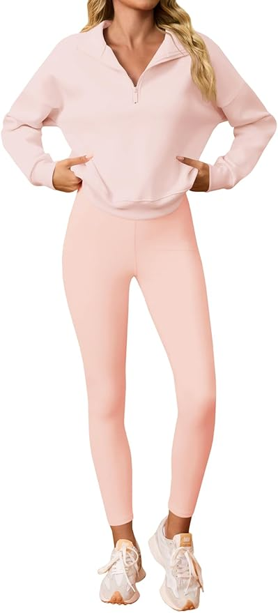Fisoew Womens 2 Piece Outfits Sweatsuits Casual Half Zip Pullover Legging Pants Matching Sets Workout Tracksuits